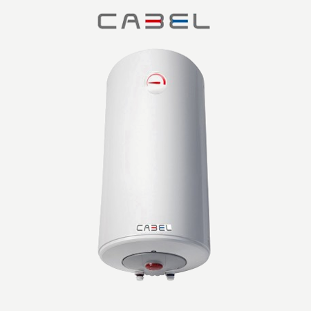 El Termo eléctrico CABEL en su modelo Horizontal o vertical esta disponible en las siguientes capacidades de litros: 50, 80, 100, 150 y 200 Litros.Producto de gran fiabilidad y prestaciones debido a la superación de controles de calidad del vitrificado y de la soldadura de la cuba,que aseguran su estanqueidad (IP25) y aislamiento. Resistencia blindada.Se ofrece con válvula de seguridad y cable de corriente. Certificados CE.